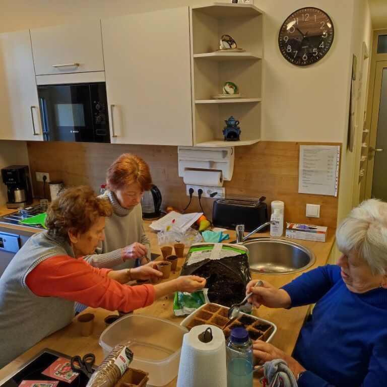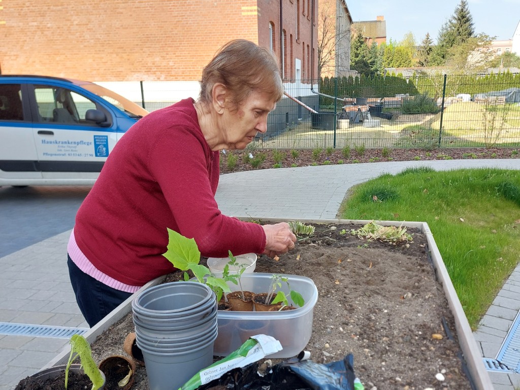 Im Dezember 2024 haben die neuen Wohngruppen nun ihre Türen geöffnet, und mittlerweile ist auch diese Einrichtung fast zu 100% ausgelastet. Gemeinsam entsteht ein Zuhause, das Raum für Begegnung, Austausch und ein harmonisches Miteinander bietet. Auch hier finden regelmäßig Betreuungsangebote statt und werden Feste gefeiert. Der Garten und die großzügige Terrasse nutzen die Bewohner gern und gestalten sie mit, indem sie in den Hochbeeten selbst Gemüse und Blumen aussäen, pflanzen und diese pflegen.